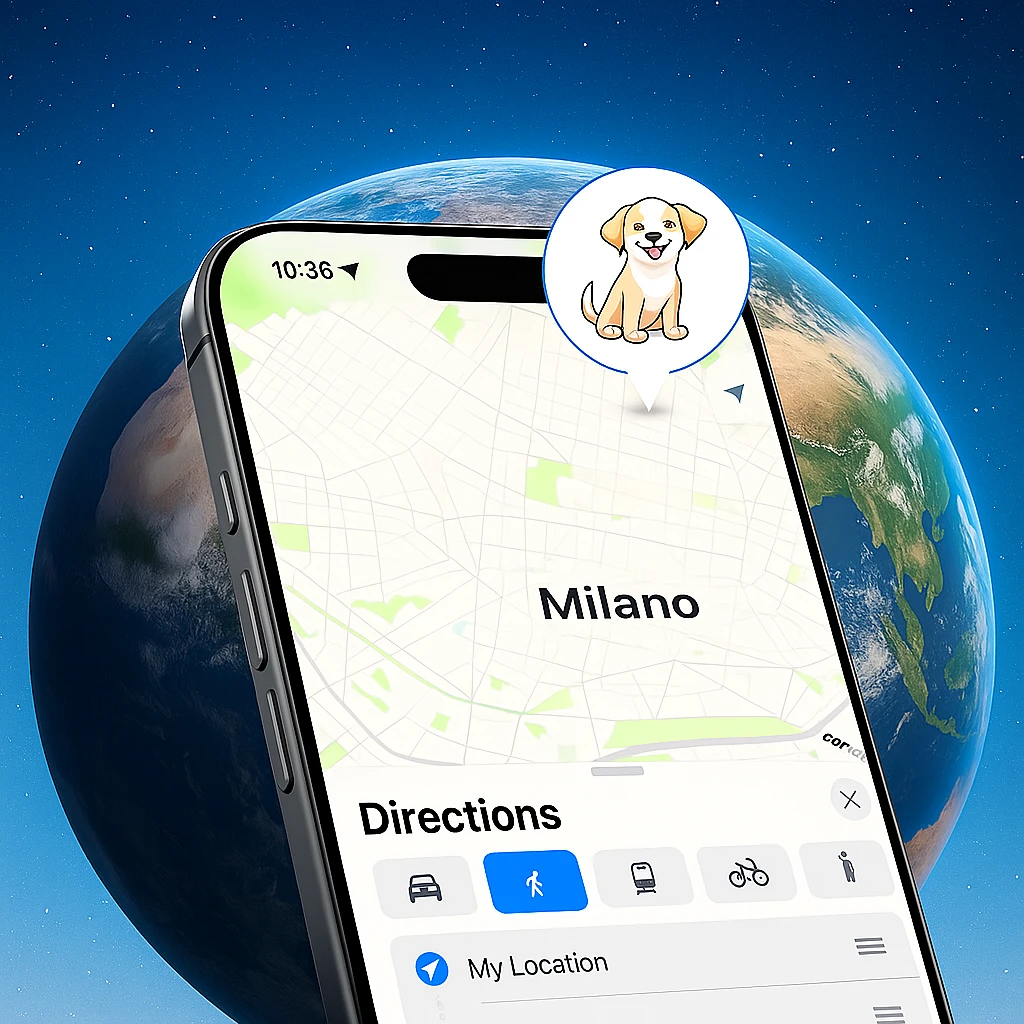 AirPet utilizza la rete “Find My” di Apple, grazie alla quale milioni di dispositivi Apple in tutto il mondo collaborano in modo sicuro e anonimo per aiutarti a ritrovare il tuo animale. Quando AirPet si allontana, invia un segnale criptato che viene rilevato dai dispositivi Apple vicini, permettendoti di vedere la sua posizione precisa direttamente sull’app “Dov’è”.