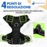 Pettorina petprotector garantisce una vestibilità comoda e protettiva: imbottitura soffice, materiali traspiranti e regolazioni multiple assicurano libertà di movimento e stabilità in ogni uscita.